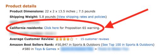 法律要求Prop 65列出的化学品必须要带有警示标签或者警告,除非其含量低到没有显著的致癌风险,或者大大低于能观察到的导致先天缺陷或其它生殖危害的水平。亚马逊有义务确保该类型的产品无论何时何地都被正确、合法地粘贴标签。