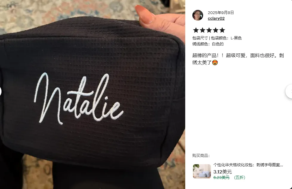 Etsy上的买家,买的不是“商品”,是“情怀、个性和仪式感”。平台的活跃买家达到了9600万,核心买家群体是18-35岁的欧美女性,占比高达97%,这些人消费能力强,不贪便宜,不在乎多花几美元,就怕买到和别人一样的大众化商品,更看重商品的原创性、个性化和情感价值——比如送朋友的伴娘包,要能刺绣名字;送新生儿的礼物,要能定制字母;自己用的化妆包,要设计独特不撞款,这也是为什么前面那家店铺,所有商品都主打“个性化”,能精准抓住买家需求。