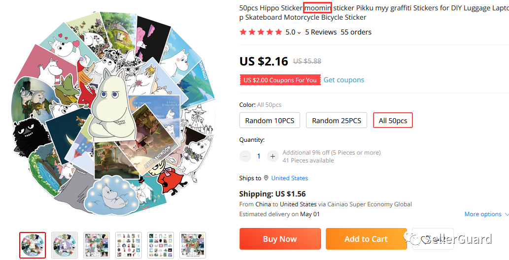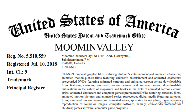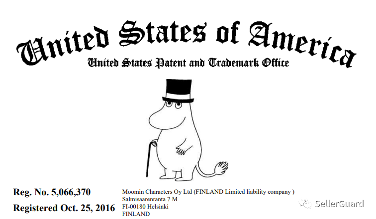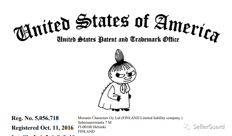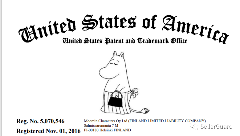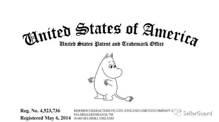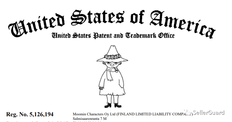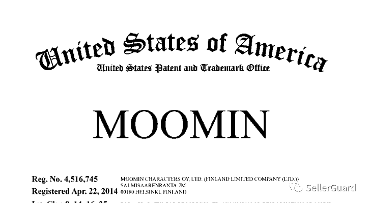 原告公司Moomin Characters Oy, Ltd 持有以下文字和图案商标,如果出现在了产品链接中,就有被告的风险。