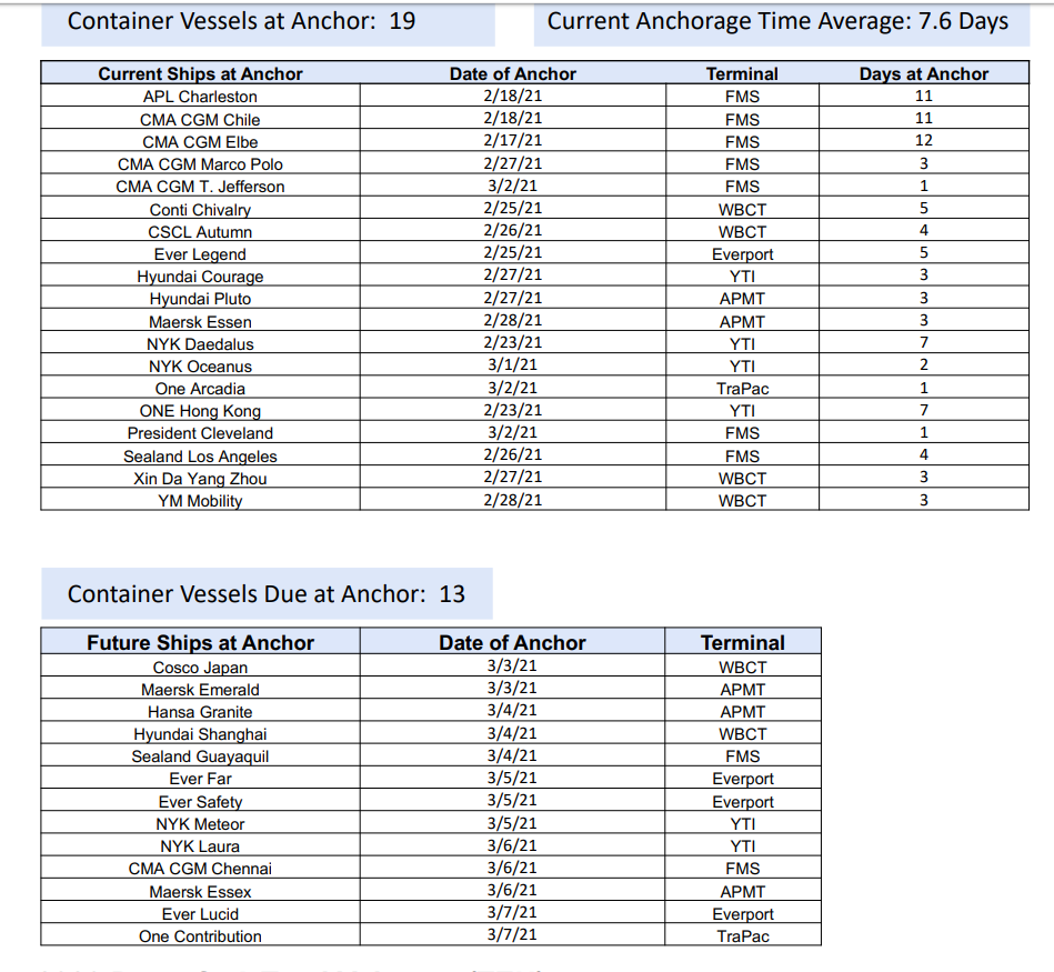 目前美国洛杉矶塞港暂没有效改善,码头工人紧缺提柜等待时长依旧很长。而大部分货船靠港后4-7天完成卸柜可提。