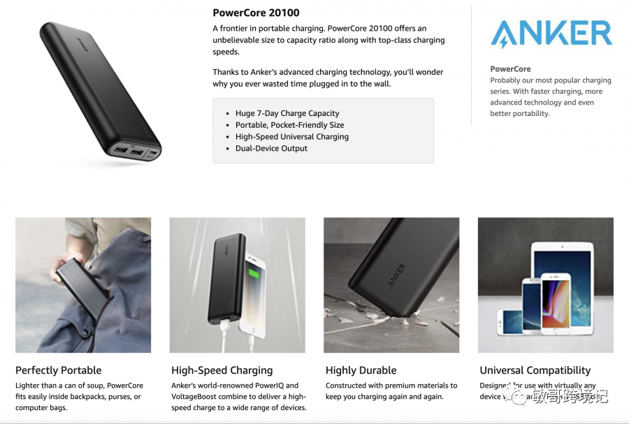 强烈建议所有看完文章的小伙伴,去找一条ANKER的listing出来进行细致的研读,看下面的这张A+图片: