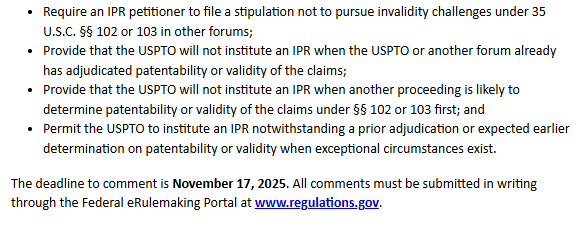 公众提交意见的截止日期为 2025 年 11 月 17 日。所有意见均须以书面形式通过联邦电子规则制定门户网站(www.regulations.gov)提交。