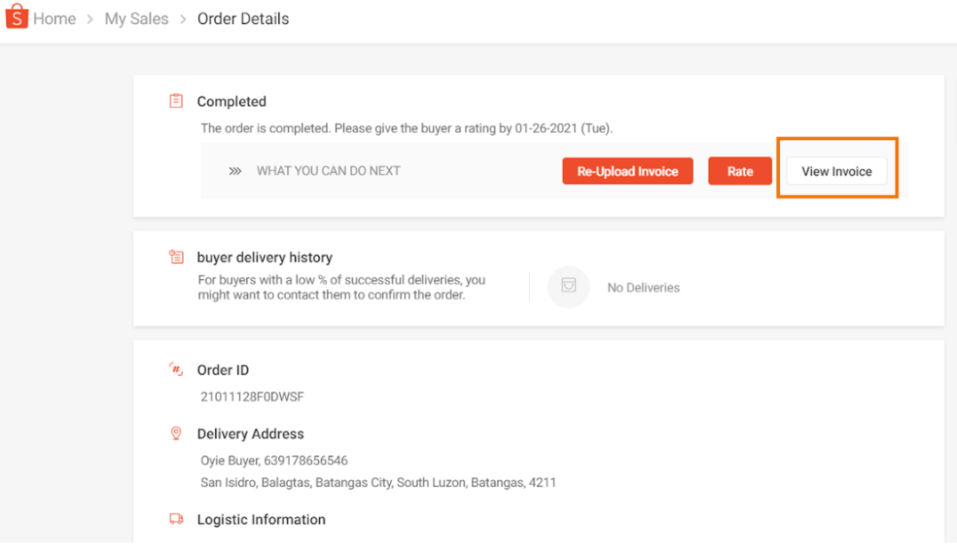 前方注意!在菲律宾境内销售并有收入的卖家,现在可开立发票并在后台上传给买家,这也是菲律宾政府法规的一部分。**此功能目前开放部分卖家