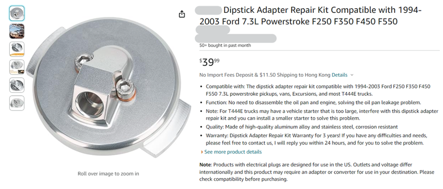 案件主要涉及两项美国发明专利US9671272、US 9285259,解决传统油底壳量油尺适配器更换时需拆卸油底壳的问题,通过免拆卸安装结构降低维护成本。专利US9671272申请日期是2016年2月4日,下证日期是2017年6月6日;专利US 9285259申请日期是2013年12月13日,下证日期是2016年3月15日卖家选品时请注意避开可能侵权的产品。