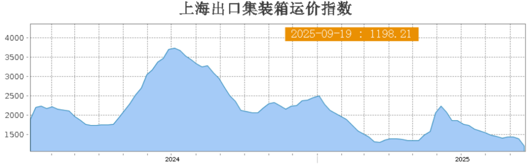 9月19日,上海港出口至美西和美东基本港市场运价(海运及海运附加费)分别为1636美元/FEU和2557美元/FEU,分别较上期下跌31.0%、22.7%。