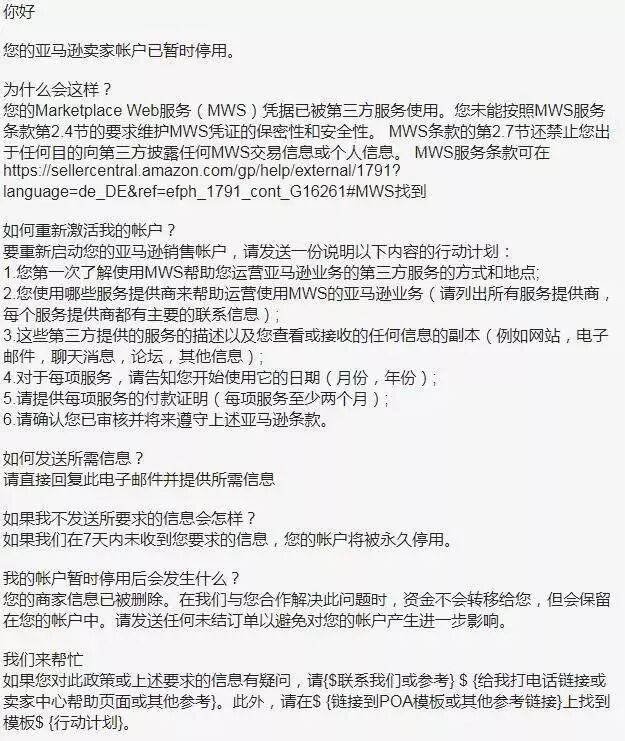 近几天,很多亚马逊卖家都遭遇了“晴天霹雳”,大批绑定了第三方服务商的卖家账号上都收到一封邮件,然后就被姐夫给封号了,并且如果卖家在一周内不提供具体的操作证明的话,账号将会被永久关停!九月刚开始,就给了这么重的一击,这还让不让人活了啊...