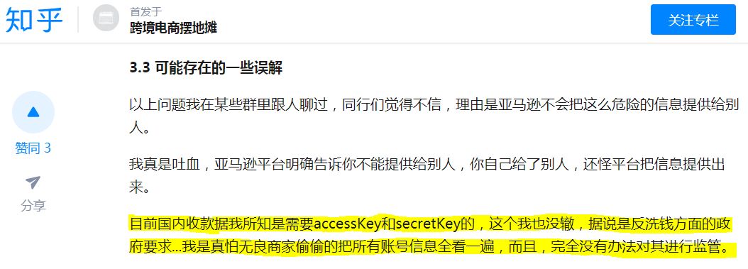 邮件具体内容如下: 从邮件中我们可以知道,亚马逊卖家的账号之所以会被关停,是由于向第三方泄露了MWS 事务性信息和个人信息,从而导致了自己的MWS证书安全和保密性不存在! 事发之后,被封号的卖家朋友慌了,没受影响的卖家朋友也发现自己原来对于亚马逊MWS也是不清不楚,更不知道已经选用的第三方服务商是不是安全。 其实跨境电商之路一直走来,毫不容易。卖家每天都会收到四面八方的小道消息或数据要求,一不留神,也许就会落入如这次MWS封号的违规陷阱! 小编跟一众卖家朋友经过一番讨论之后,更发现坊间有一个重大的误传: 错!错!错! 我们明白,有时候服务商要您怎么做,卖家好容易就照做。当有服务商采用Secret Key方式获得卖家店铺信息时,甚至在官网也写出教学,卖家自然会误以为这个做法是没问题的。而且,对于卖家还是服务商来说,提供Access Key和Secret Key可能是最省事的。但谨记,这种方式并不合规,因为出现问题的话,亚马逊是有权追究卖家的责任!卖家朋友们,小编在此提醒大家,不要贪图一时之快,一定要好好保护好自己的账号信息,这才是打赚钱长久战的王道呢! 记住(重要的东西要说三遍): 任何情况下 都不要给Access Key和Secret Key第三方! 任何情况下 都不要给Access Key和Secret Key第三方! 任何情况下 都不要给Access Key和Secret Key第三方! 因为这样做跟干脆把您家钥匙交了给别人没分别,而这个门锁还是不能随便的改呢! 以WorldFirst为例,我们从来没有向客户要求Access Key和Secret Key,因为我们一向尊重客户的隐私。大家也知道,在合规方面,我们一直是行业的佼佼者,风控也做得齐全。对WorldFirst来说,任何事都没有比保障客户账户及资金安全更重要,因为这样做才可以确保风险减到最低,让一众卖家出海赚钱时加倍安心。 当然,我们理解政府规管或平台要求越来越严格,但是我们WorldFirst可以在此向大家承诺,日后即使有什么政策变更,我们肯定会用最可以保护我们广大客户的数据安全的方法,同时做到合法合规的方式处理,确保客户的资金安全,一贯我们做强不走偏路的作风!