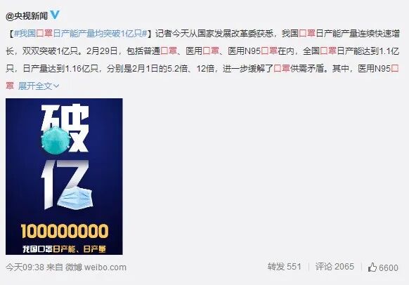 今日,我国口罩日产能产量连续快速增长,双双突破1亿只,进一步的缓解了口罩的供需矛盾。