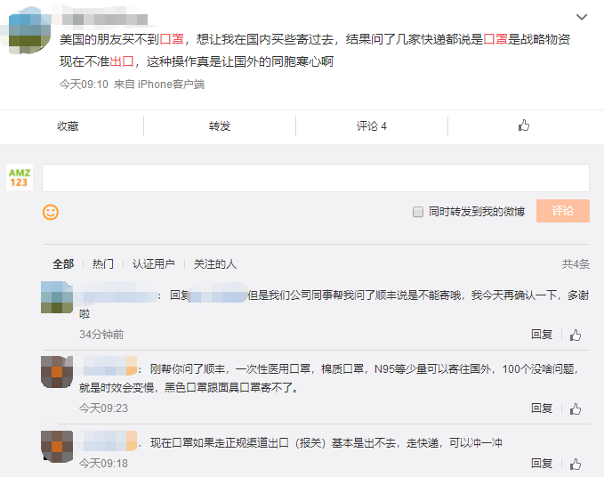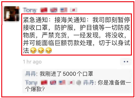 但有网友回复:现在口罩如果走正规渠道出口(报关)基本出不去,走快递可以冲一冲。