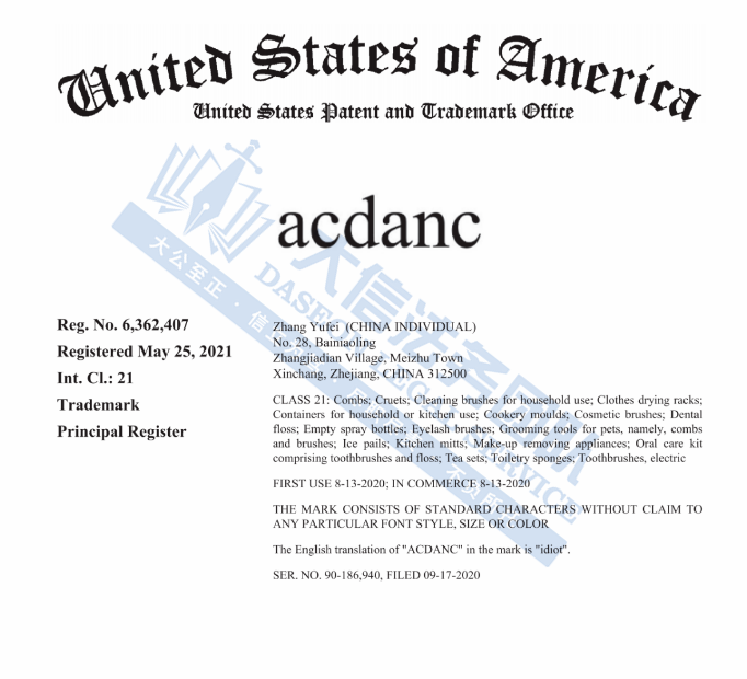 此案为商标维权,涉及一项商标,商标号:6362407,注册在第21大类,涵盖各类厨房用具、家用清洁刷、梳子、含牙刷和牙线的口腔护理套装、宠物美容工具及相关产品等类目,以下是涉及商标的具体信息,未经授权不得擅自使用,跨境卖家尽快检索下架,避免TRO侵权风险!
