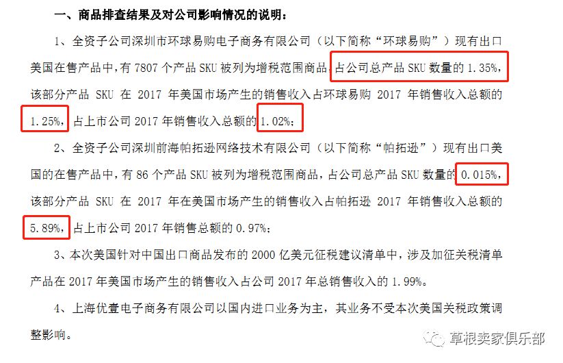 在这海量的sku下,以及在特朗普对2000美元商品增加10%关税的情况下,加税品类也就占了环球易购总品类的1.35%,占帕拓逊的0.015%,在整体上看,影响不算很大。