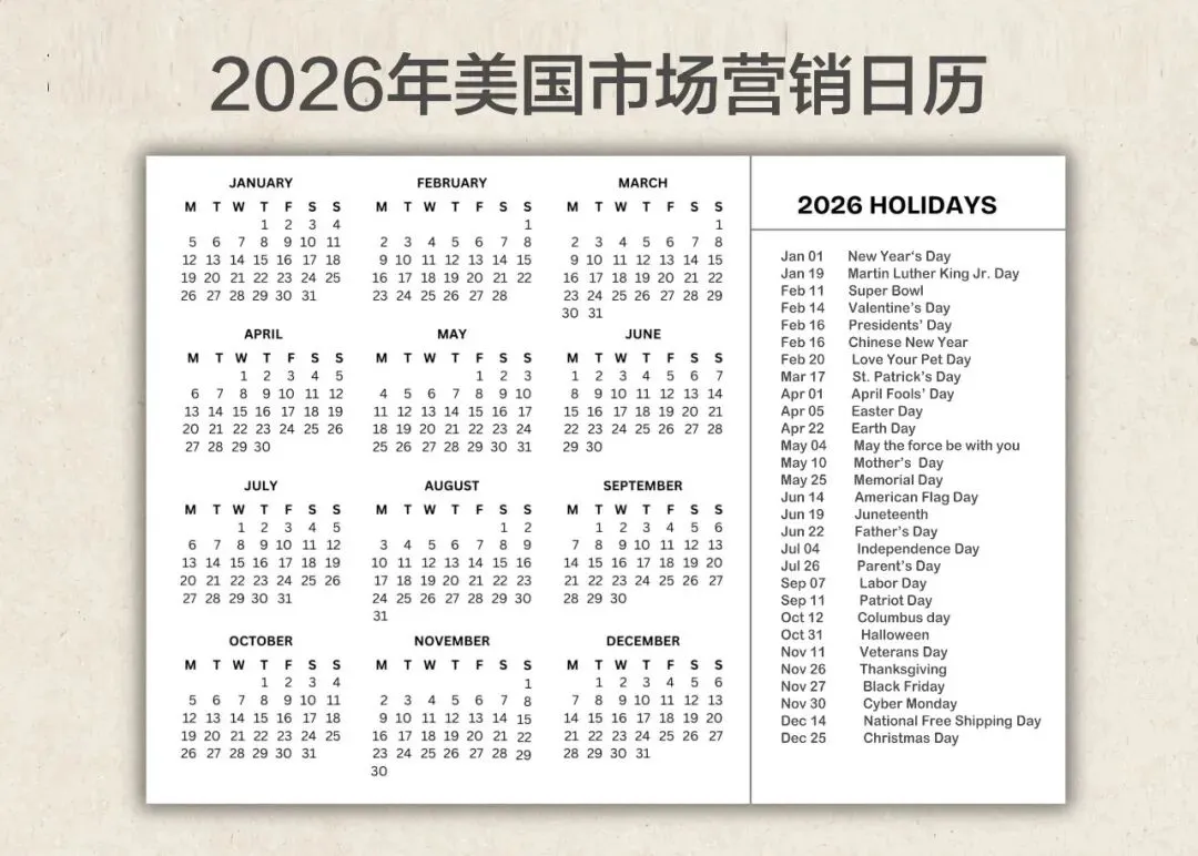 这个旺季有些忙,本应1个月前发布的营销日历只好放在了圣诞后才写。2026年的美国节日营销日历,虽迟但到!