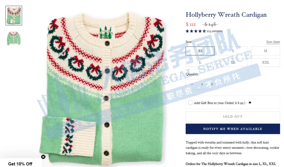 此案为版权维权,共涉及1张作品,版权号:VA 2445139,下证日期为2025年1月30日,以下是维权具体信息,未经授权不得擅自使用,跨境卖家尽快检索下架,否则会有TRO侵权风险!