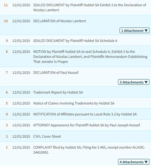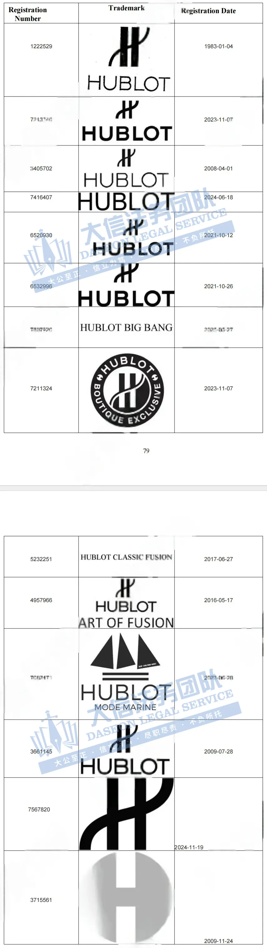 此案为商标维权,涉及超多图文商标,维权关键词:HUBLOT,以下是维权具体信息,未经授权不得擅自使用,跨境卖家尽快检索下架,否则会有TRO侵权风险!
