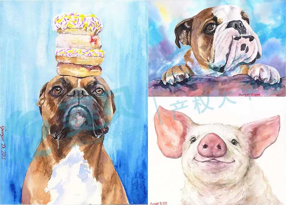 这个案件涉及 3 项 “动物主题插画” 版权,有英国斗牛犬、小猪、拳师犬这些题材,风格是治愈系水彩写实风。美国版权侵权判断的核心是 “实质性相似”—— 就算你改了点颜色、加了点小装饰,只要核心图案和这 3 个作品像,就可能侵权。