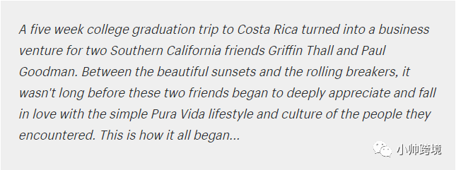 这里有一个例子,它讲述了Pura Vida手镯的创始故事。