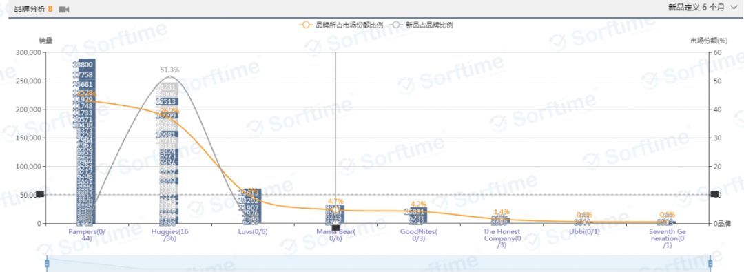 以上两张图表可以看出,婴儿纸尿裤市场容量是很大没错,但是品牌垄断情况严重,除非你是很有实力的品牌方或代理商,否则不适合这个类目,看着大麦们赚钱就好。