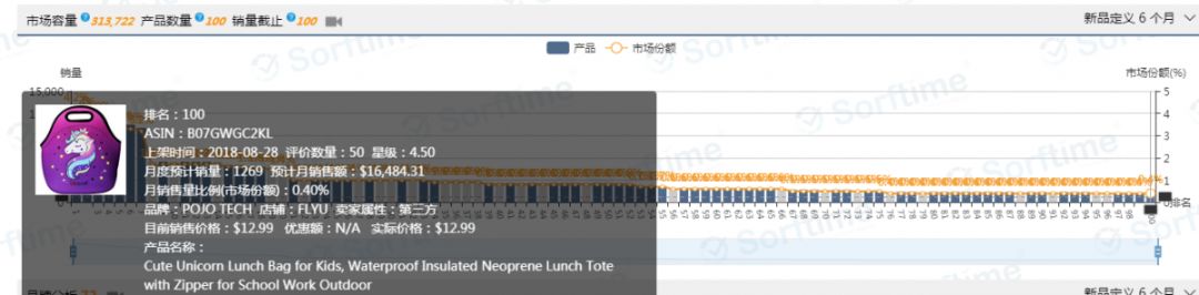 以上数据可以看出,午餐袋市场容量挺大,而且评价数量较少的产品也有机会进入前100。