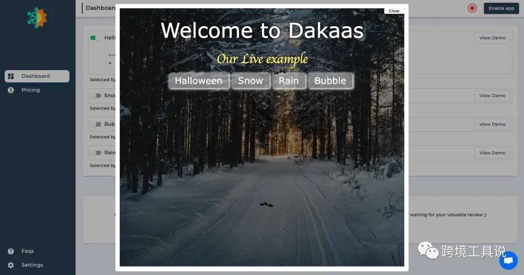 万圣节季节永远是购物的最佳借口。现在,你可以用季节性装饰给访客带来惊喜。这使你的商店成为他们购物的愉快场所。Snowfall Effect Plus 是一款可以帮助你为万圣节季节增添商店气氛的应用程序。