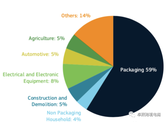 2015年欧盟塑料垃圾来源百分比,包装占比59%