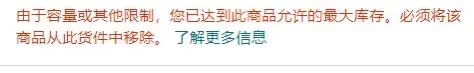 系统显示,“根据预测需求,该产品已有100天的最大供应量,请从本次货件中移除该物品,或申请例外以发送更多数量”。