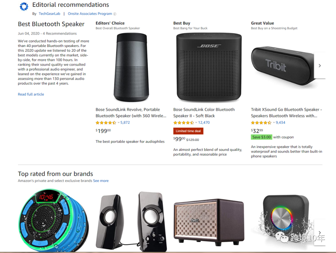 头部3个广告位都是亚马逊自营品牌,甚至增加了Top rated from our brands