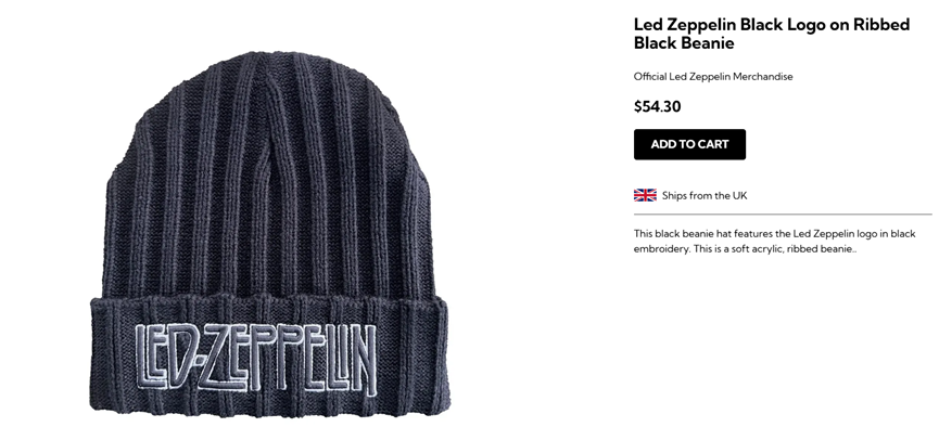 (图片来源:https://store.ledzeppelin.com/products/led-zeppelin-black-logo-on-ribbed-black-beanie;引用日期2025-2-3)