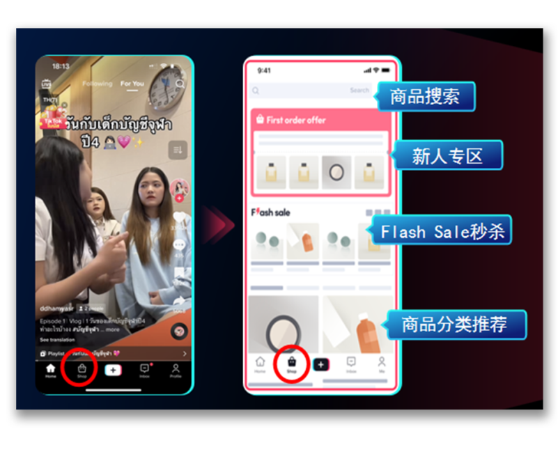 TikTok Shop为商家和品牌提供一站式电子商务解决方案,使品牌、商家和创作者能够直接通过短视频、直播和商品展示等方式展示和销售商品。