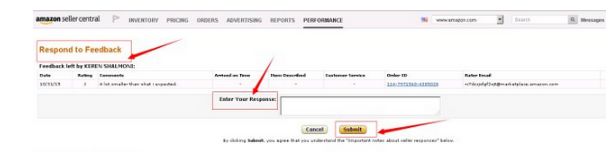 2、查找你要回复的评价,然后单击“Respond”(回应),输入你要回复的内容,最后只需点击“Submit”(提交)。