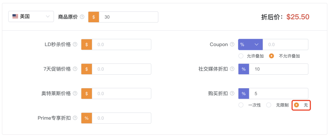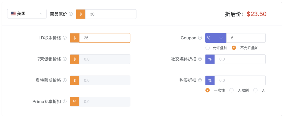 使用折后价计算器先跑一遍,再设置优惠,避免利润计算错误;