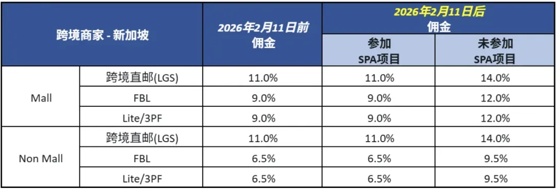 自 2026 年 2 月 11 日 起,商城(Mall)及非商城(Non Mall) 商家的佣金费率将根据项目参与情况进行调整,具体如下: