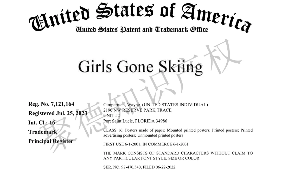 原告是美国复古风格艺术家,以经典车型、美式乡村小镇等怀旧题材创作见长。他是Girls Gone Skiing系列复古滑雪海报的版权人,本案即针对该系列所涉商标进行维权。