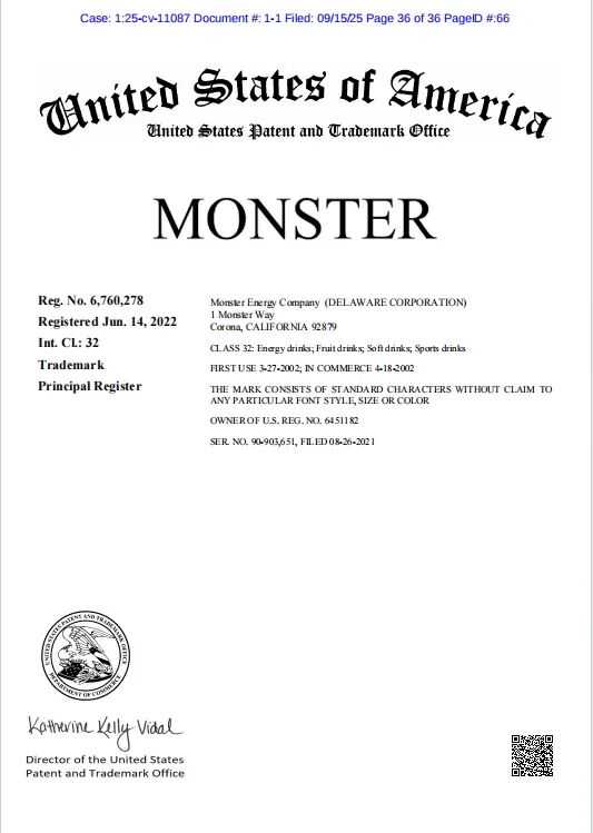 ·Monster Energy Company(2025-cv-11087)