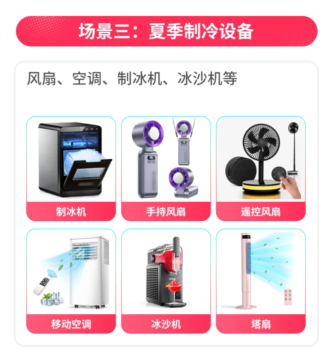 把握春夏户外出游、世界杯多人派对/家庭聚会、夏季制冷设备应季趋势品类:
