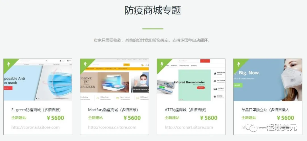 当时,我也跟热点发了几篇文章,同时推出防疫用品商城建站服务。很多想搭这趟车的卖家,找上我们代建防疫用品商城。 当时生意很好,大概一天就能卖出十几个站,想赶上这波风口的人很多。