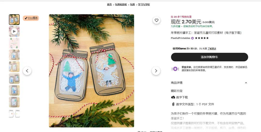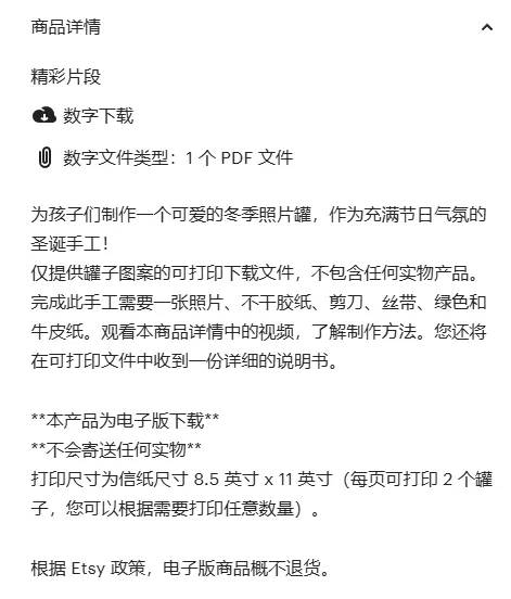 就拿以下商品举例,是一款圣诞节儿童可打印素材,可以看到,商品名称旁边写着(电子版下载),包括商品描述中也有介绍。