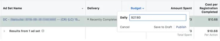 我们将广告系列的预算从每天的23美元增加20%,改为27.6美元,在运行4天,之后再看情况进行优化。
