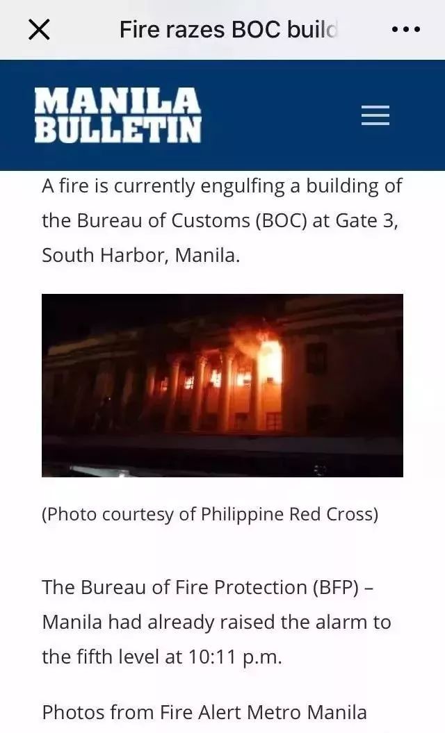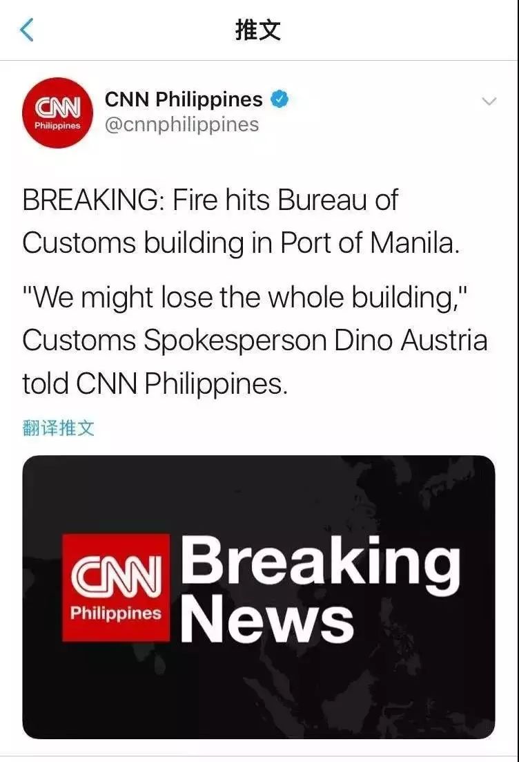 菲律宾海关发言人表示,他们目前还无法判断马尼拉港哪些大楼的办公室受到火灾影响。该发言人后来又对CNN记者称:"我们可能失去整栋大楼。"