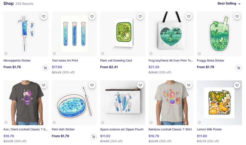 原告Sara Nemec作为一名艺术家,主要创作以物件、花卉及科学主题为核心的插画作品。她自十三岁起便持续进行艺术创作,早期在多类网络平台发表作品,直至2024年正式创立个人艺术品牌。其艺术风格以色彩明快、线条简洁、几何构成为突出特征,兼具卡通与动漫美学特质。
