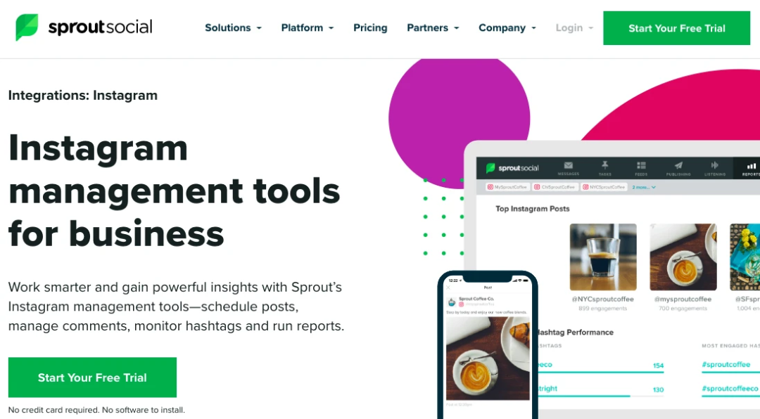 Sprout Social 是一个社交媒体管理平台,具有广泛的内容计划和发布工具。Sprout Social 还提供深入的 Instagram 分析,让你可以访问有关最新帖子的表现的详细报告。