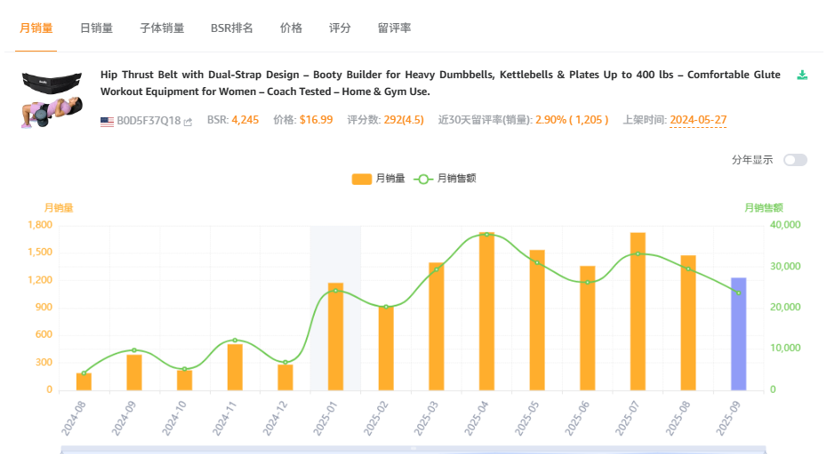 该品近30天的销量有1000+,再看历史销量数据,近9个月的销量平均也有1000+了。整体还不错。