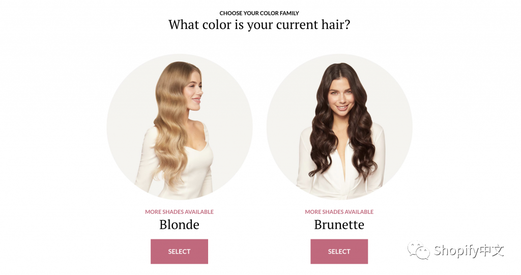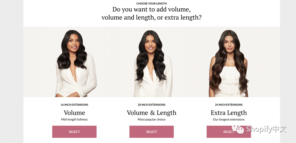 luxyhair是一家假发销售店铺,因为假发的款式样式多种多样,luxyhair做了一个专门帮助客户选择假发的页面,通过在这个页面将假发的所有属性通过图片展示出来,让客户进行选择。在一步一步的选择过程中,会推荐出几款顾客心仪的假发。
