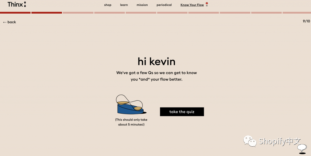 Thinx为解决客户的疑问专门制作了“Know Your Flow ”一个订阅场景,将教育与产品特效结合起来,在客户浏览的时候,将客户的信息收集齐全后,为客户输出一份分析结果,帮助客户购买试用的产品。而具Thinx解说,再推出Know Your Flow 后,测验者的转化率是未参加测验者的转化率的五倍。该工具的完成率超过90%。(对该工具进行了一些调整,现在它的比例为99%。)