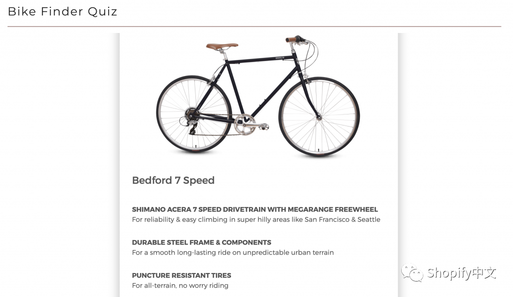 顾客通过选择产品的类型,使用场景等问题,网站为客户推荐出最为试用的自行车。布鲁克林自行车公司测验参与者中客户购买率大大的进行了提升,而参与者中的21%也会成为有价值的潜在客户。该品牌还有另一种机会,可以通过亲自访问或预订礼宾服务来转化这些潜在客户。