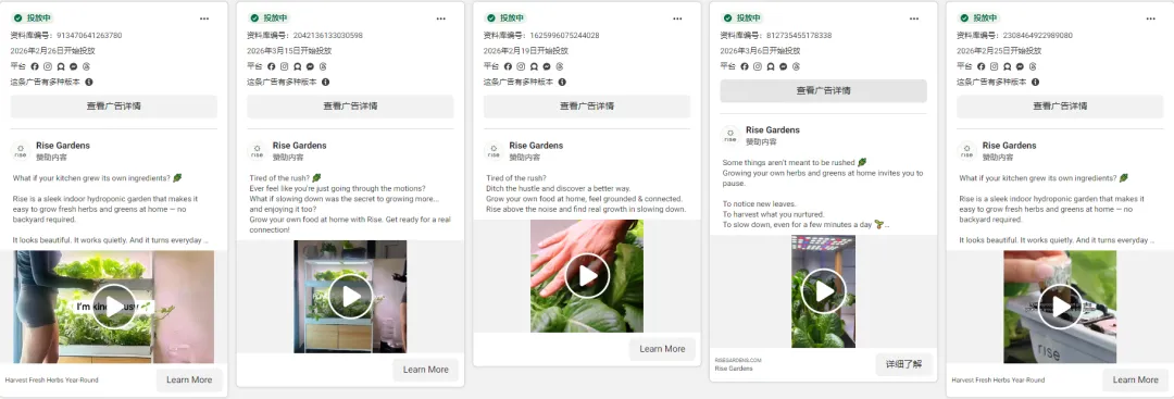 本质上,Rise Gardens的广告策略是通过“情绪价值”来替代传统的“功能说服”,通过与用户情感的共鸣,来提升品牌的吸引力和转化率。