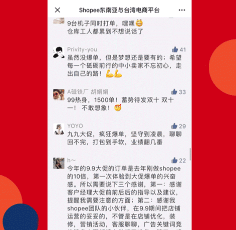 Shopee 9.9超级购物节战绩惊人,跨境爆单至平日5倍!卖家朋友们纷纷表示“仓库彻夜加班”、“9.9的单打包到中秋”、“平均5秒钟一个单子”,甚至还有卖家说“店铺跑赢了Shopee大盘”!