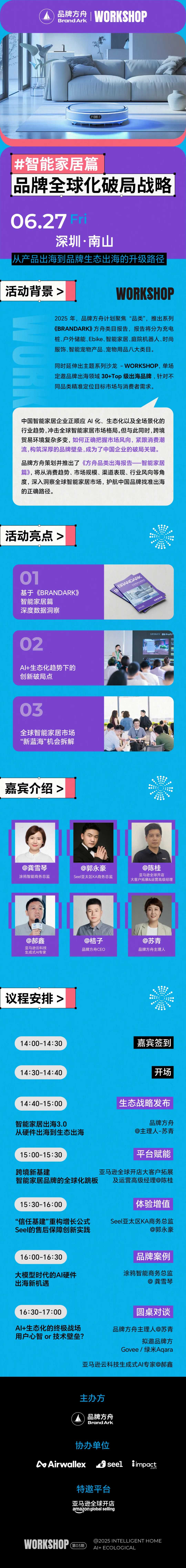 无论您是智能家居企业的CEO,还是行业从业者,亦或是对智能家居出海感兴趣的投资者,都能在这里获得启发。品牌方舟期待您的参与,与行业大咖共探出海新路径,共谋发展新机遇!