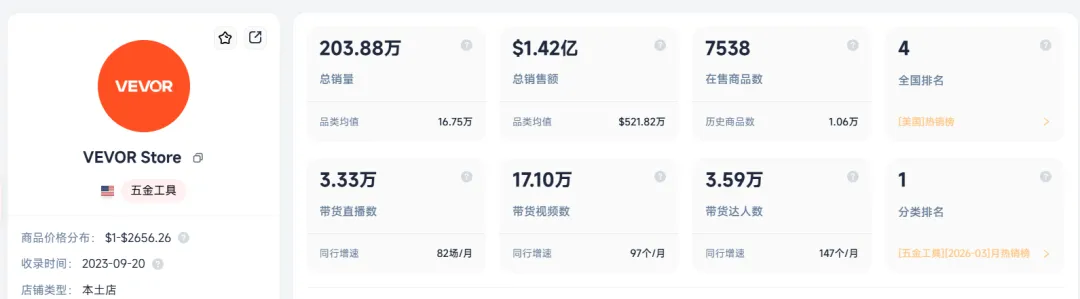 公开资料显示,VEVOR是上海司顺于2013年创立的品牌,专注于MRO工具设备类产品,出海业务涉猎独立站,以及亚马逊、沃尔玛、TikTok、速卖通等多个主流平台,2024年的营收高达80亿。