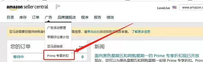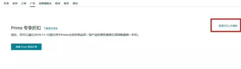在卖家平台的【广告】选项卡中,选择 【Prime 专享折扣】