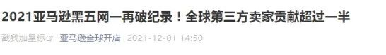 亚马逊表示,2021年黑五网一销售额再破纪录,其中第三方卖家的销售额占比超过50%。不过,今年亚马逊和往年公布战绩的画风有很大不同,官方对黑五网一的销售数据只字不提!